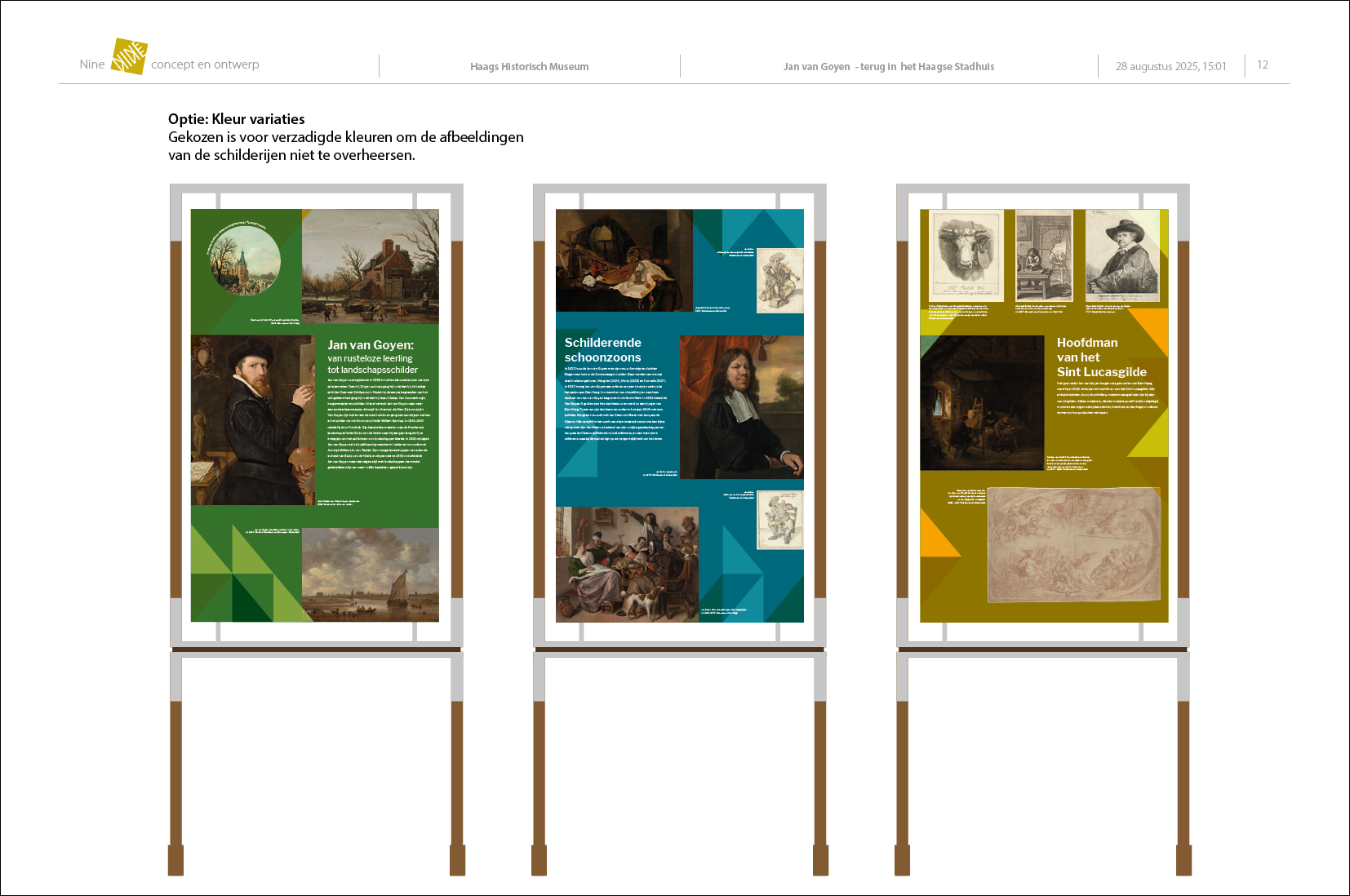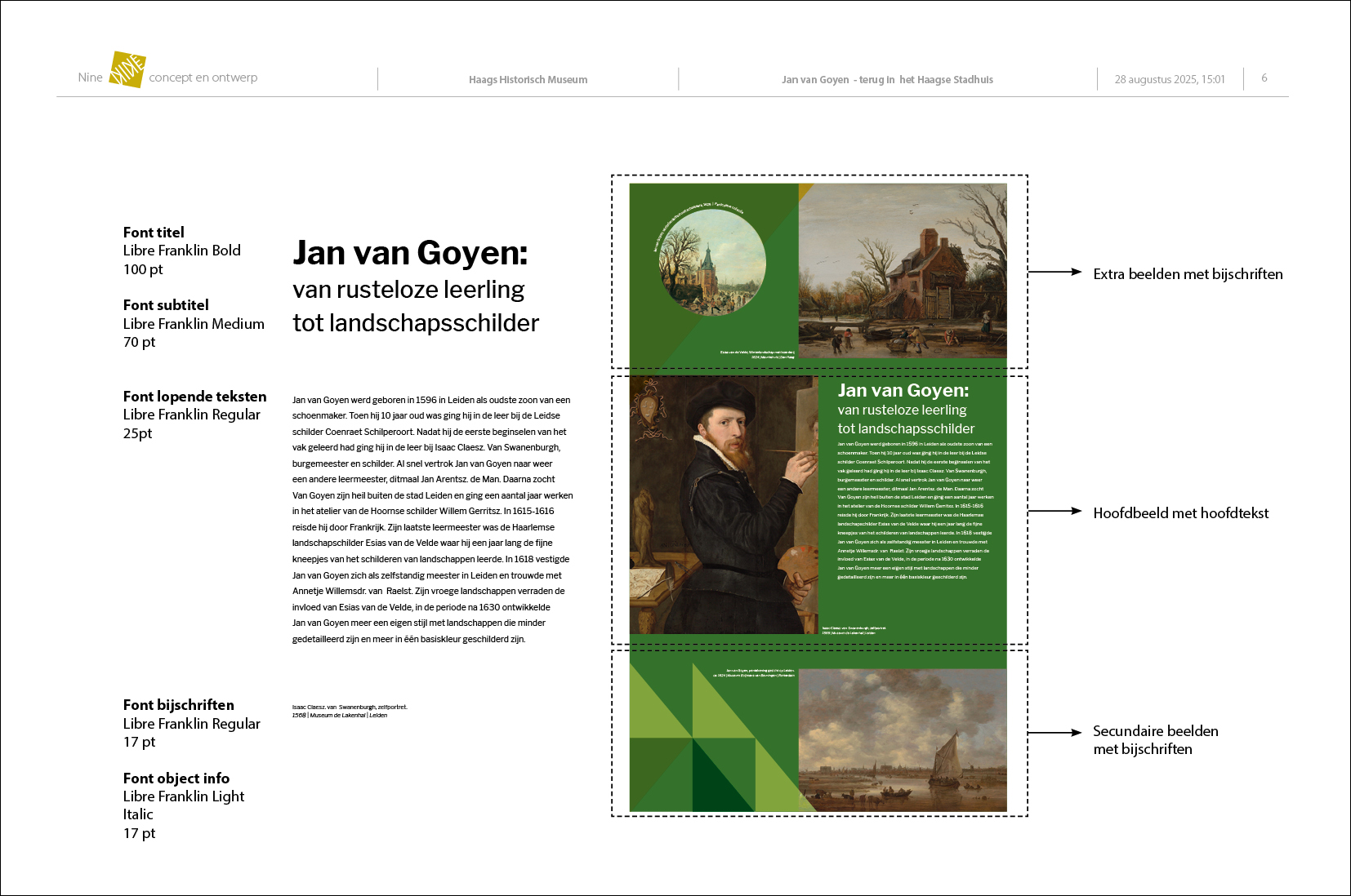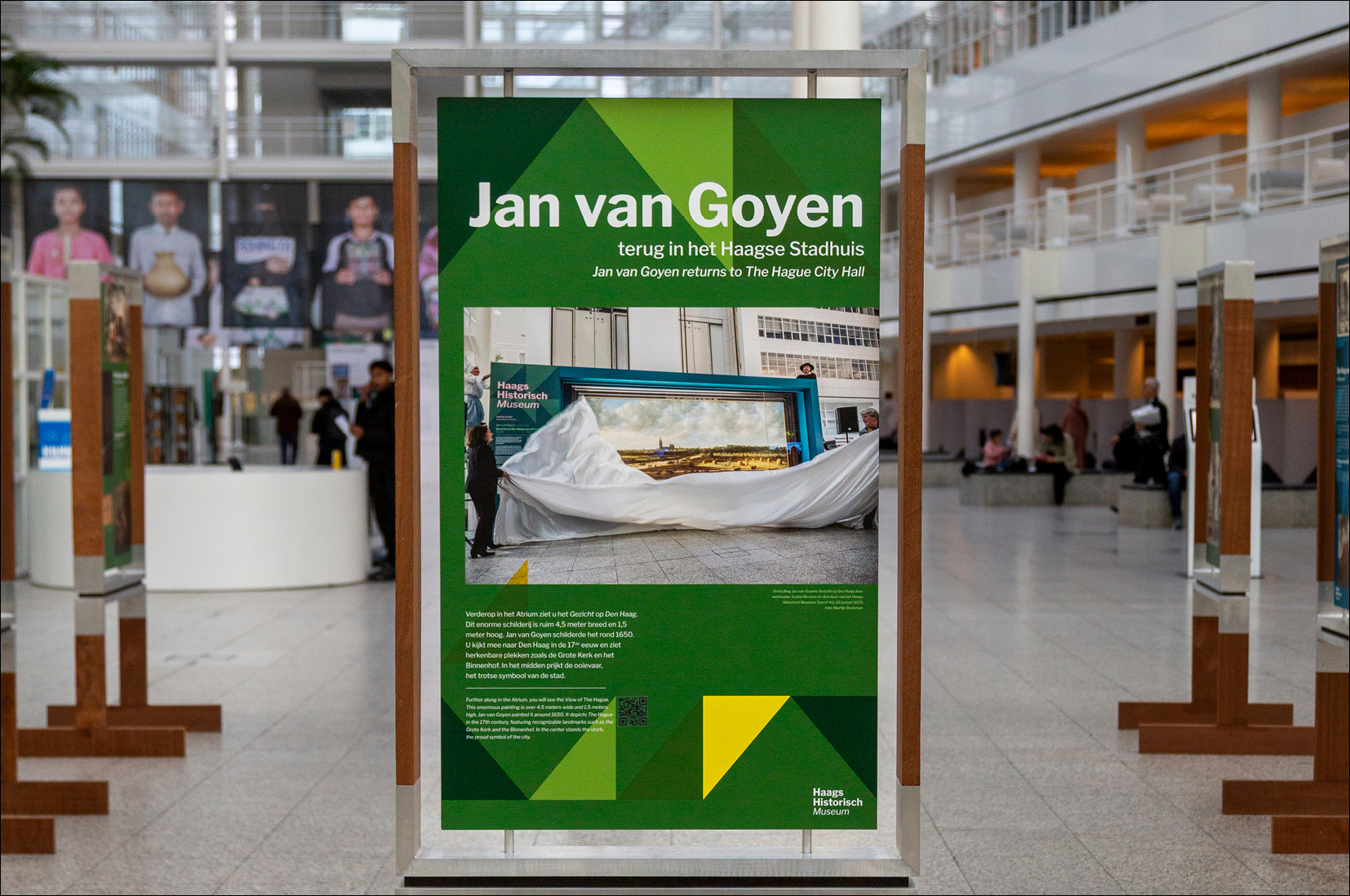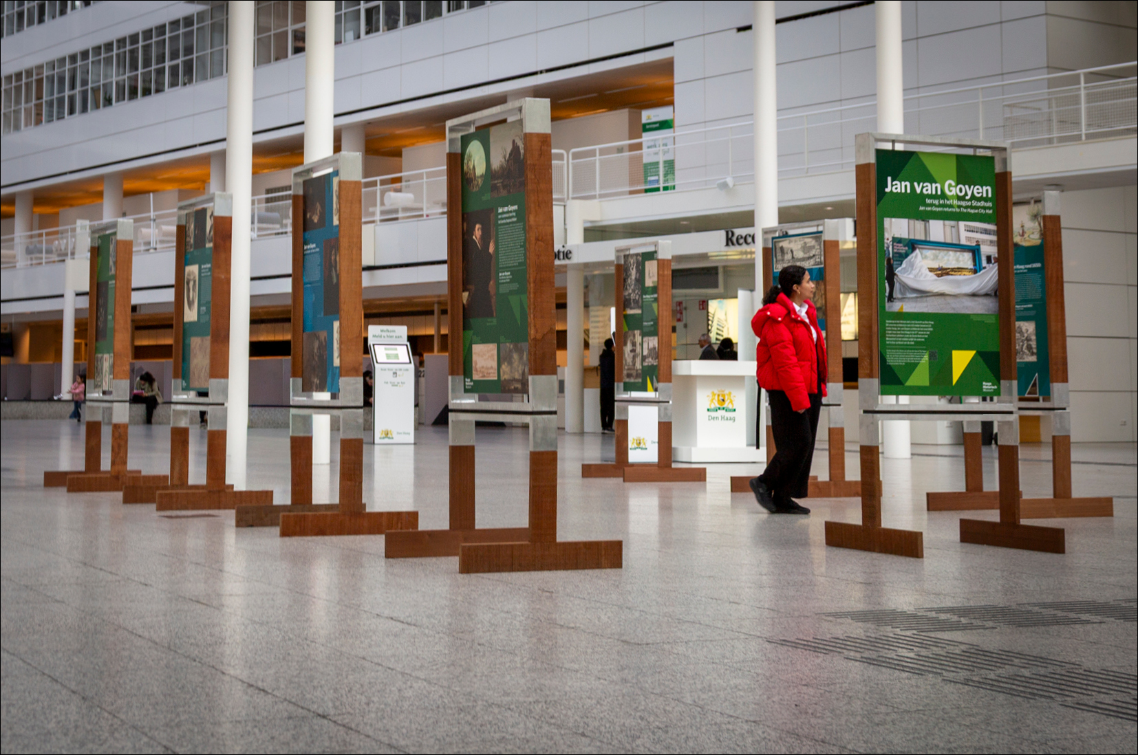 Voor het Haags Historisch Museum ontwierp ik de presentatiepanelen bij Gezicht op Den Haag vanuit het zuidoosten van Jan van Goyen. Dit monumentale stadsgezicht van 4,6 meter breed toont het 17e-eeuwse Den Haag in volle glorie: een stad te midden van weilanden, bedrijvigheid en trots. Het werk is tijdelijk te zien in het Atrium Den Haag, terwijl het museum wordt verbouwd.
