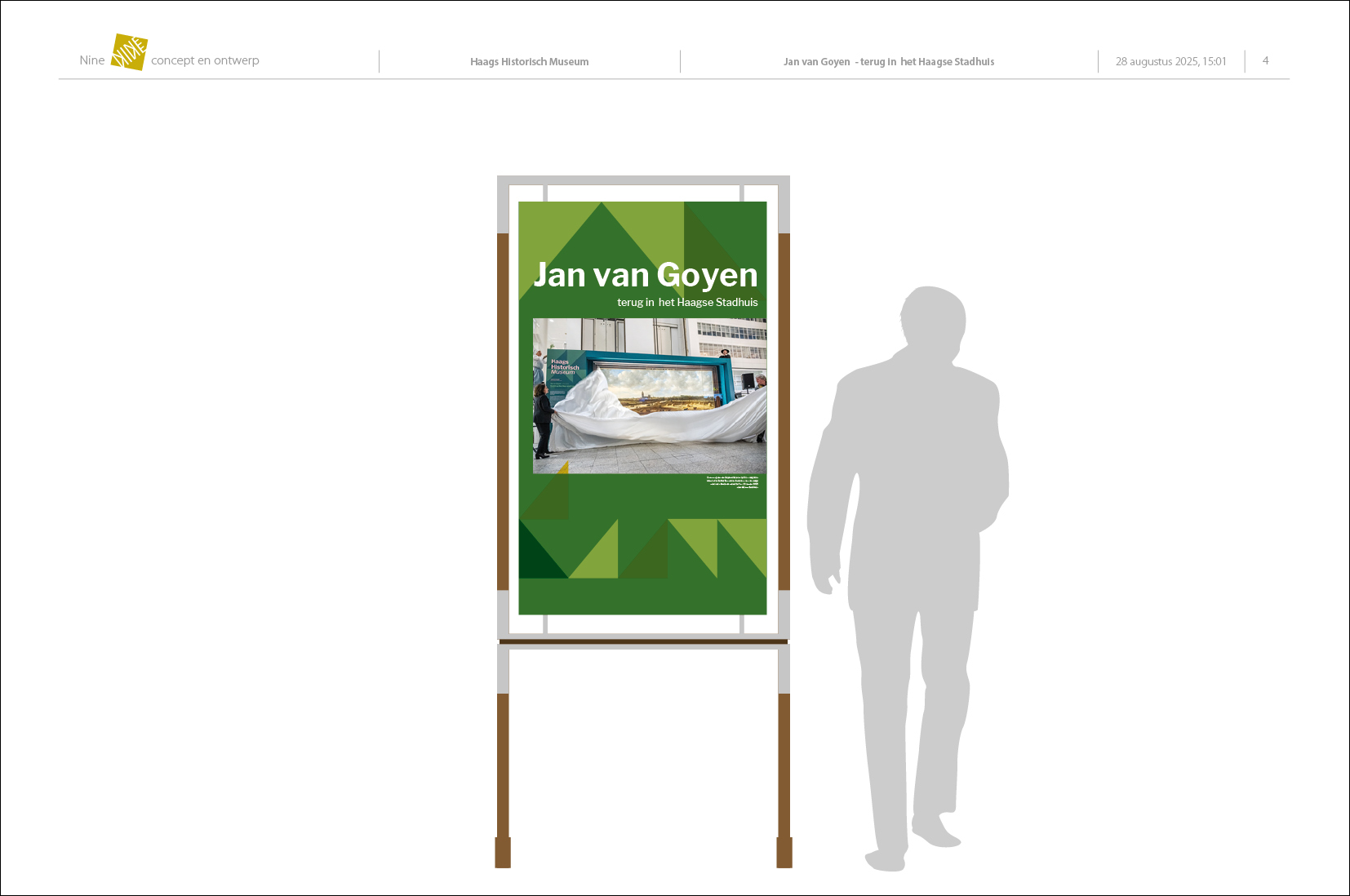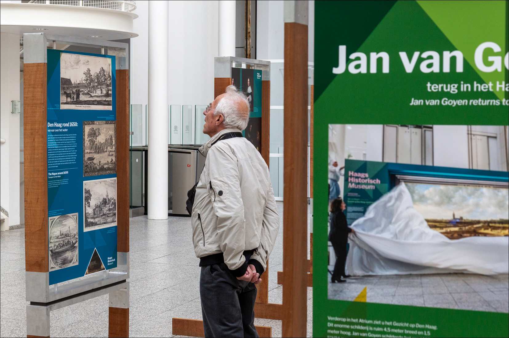 De presentatie brengt dit stadsgezicht opnieuw tot leven, midden in de hedendaagse stad. Het ontwerp, vormgegeven binnen de huisstijl van het museum, leidt bezoekers stap voor stap naar het schilderij verderop in de ruimte en geeft context aan het werk en aan Van Goyens blik op Den Haag.