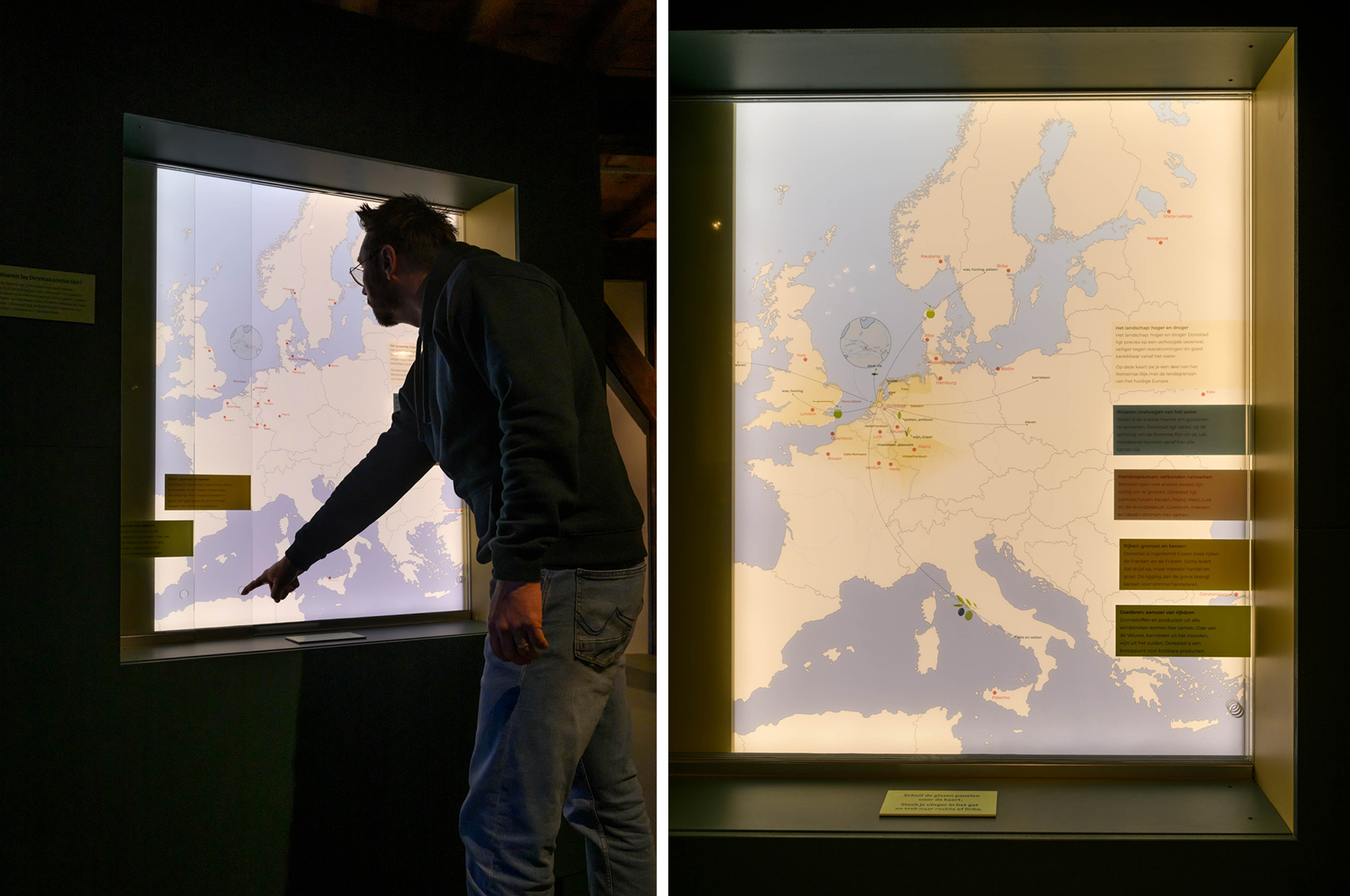 Bezoekers kunnen aan boord van het schip van Katla stappen en mee reizen naar de vroege middeleeuwen. Hier ontmoeten ze de bewoners van Dorestad, die vertellen over hun werk, hun handel en hun dagelijks leven. Unieke archeologische vondsten en een indrukwekkende maquette brengen de oude handelsplaats tot leven.